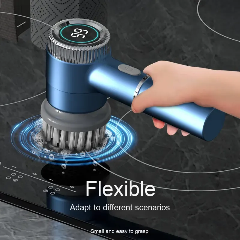 Multipurpose electric spin scrubber with replaceable brush heads for tableware and bathroom kitchen cleaning